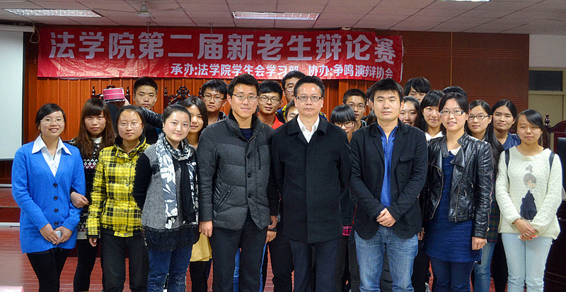 2013年12月09日,晚7点,由法学院学生会学习部承办、争鸣演辩协会协办的新老生大学生辩论赛决赛在大模拟法庭精彩上演。本次辩论赛主题为:“行千里路胜于读万卷书还是读万卷书胜于行千里路”。参赛队分别是法学院12级代表对13级法学院代表,法学院陈明添院长与全体辅导员参加了本次辩论赛。