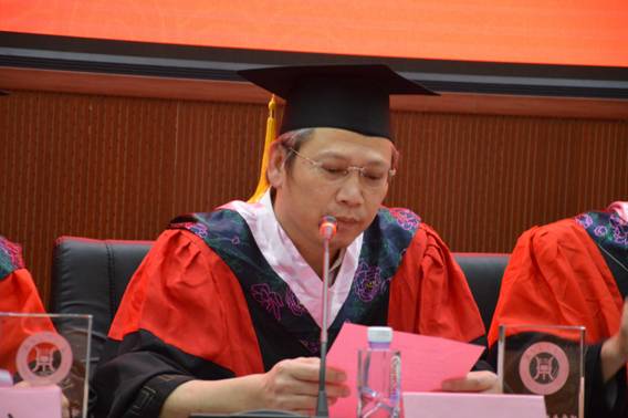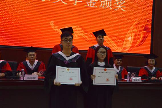 毕业典礼在庄严的国歌声中正式拉开帷幕。首先,陈恭健副书记宣读了《关于表彰2016-2017学年国家奖学金获奖者的决定》,黄炀炀、蔡敏同学荣获国家奖学金,学院领导表示祝贺并为获奖同学颁发了荣誉证书。
