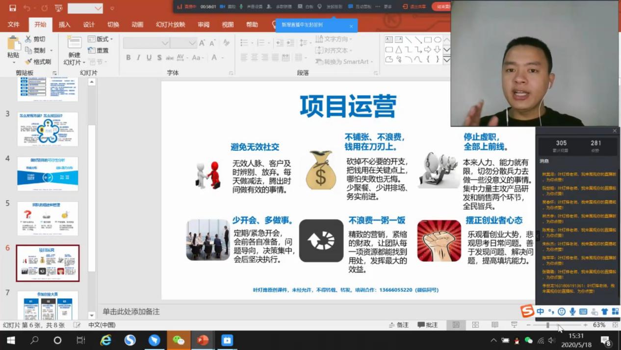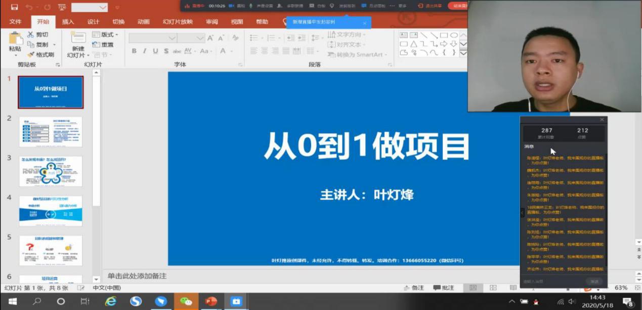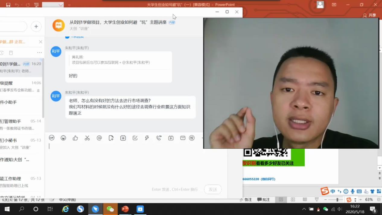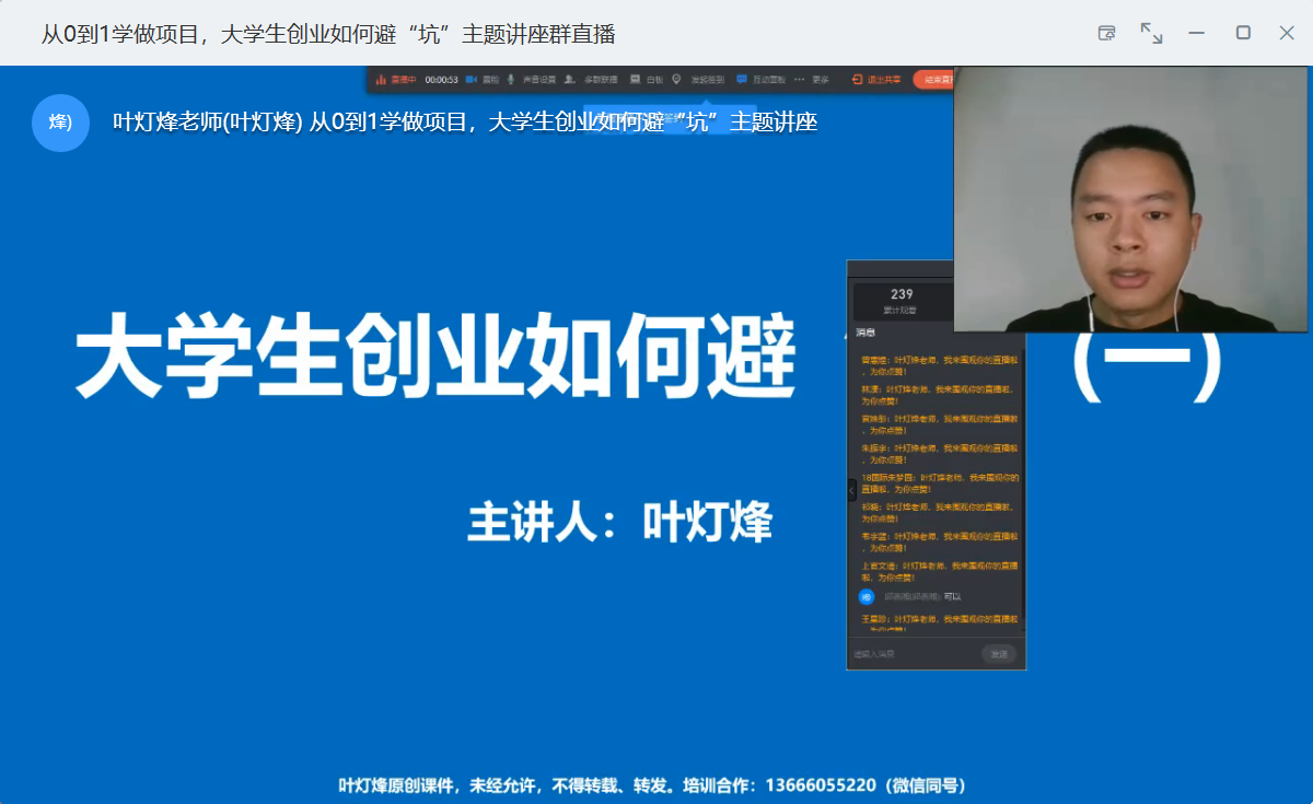5月18日下午,法学院举办“如何从0到1学做项目,大学生如何避‘坑’”主题讲座,本次讲座以直播的方式在钉钉平台上举行。厦门创赛教育投资有限公司创始人叶灯烽老师担任本次讲座主讲,讲座由2018级辅导员黄礼锵老师主持,法学院300多名学生线上观看讲座。