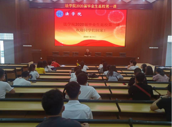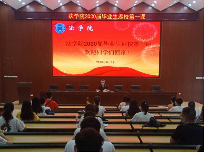 为确保返校复学工作顺利进行,确保疫情期间卫生安全。6月1日法学院组织开展2020届毕业生返校第一课,法学院陈明添院长、党委陈恭健副书记、2016级辅导员王喜军老师为2020届毕业生代表讲授返校复学第一课。