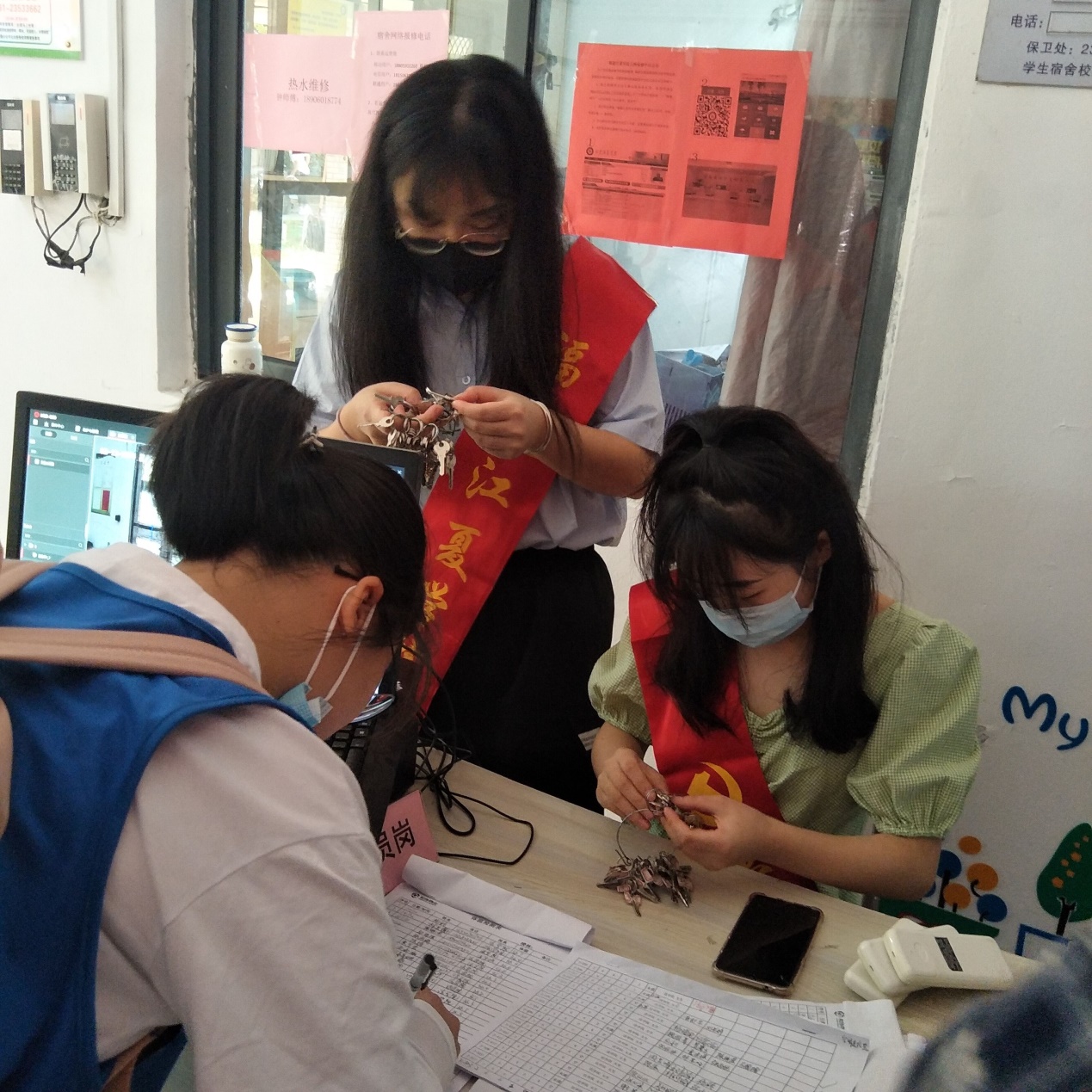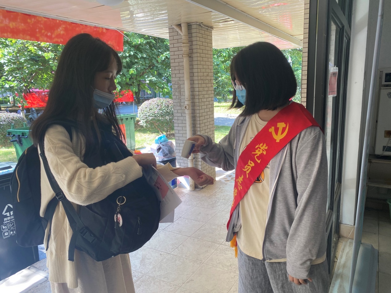 在迎新大本营和宿舍楼栋,不时出现学生党员的身影,他们亮明身份,佩戴党员徽章和“党员志愿者”绶带,主动走到新生面前,测量体温,帮助新生搬运行李,指导办理入住宿舍手续、现场解答新生到校生活困惑,暖心交流缓解新生紧张感,帮助新生快速融入到温馨的学校大家庭。
