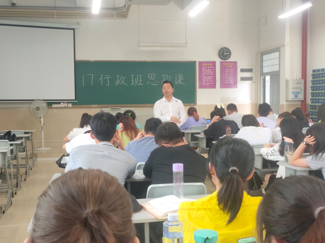 2020年10月9日下午,法学院副院长林贵文在教学楼7B108为2017级法学(行政法方向)班上题为“立德树人,后疫情时代的世界观与价值观的树立”的思政课。