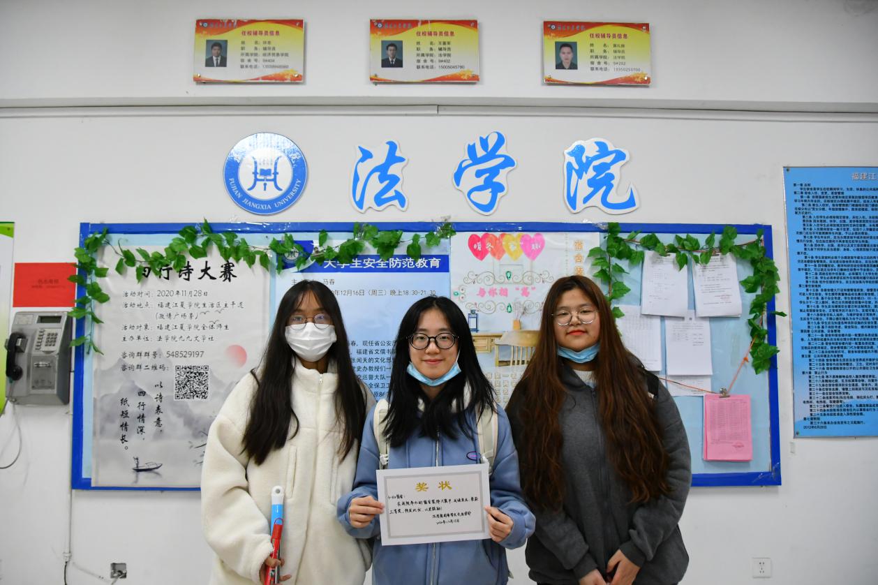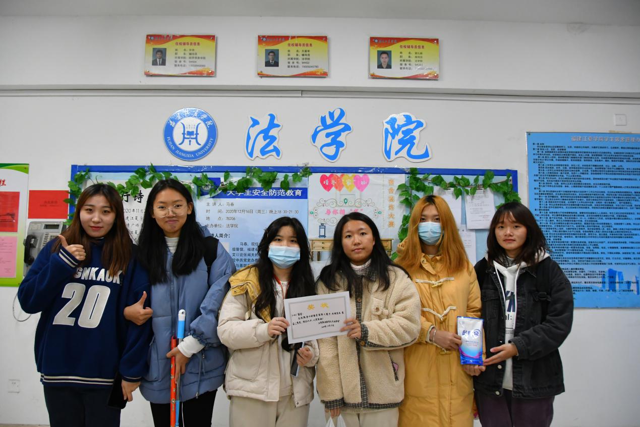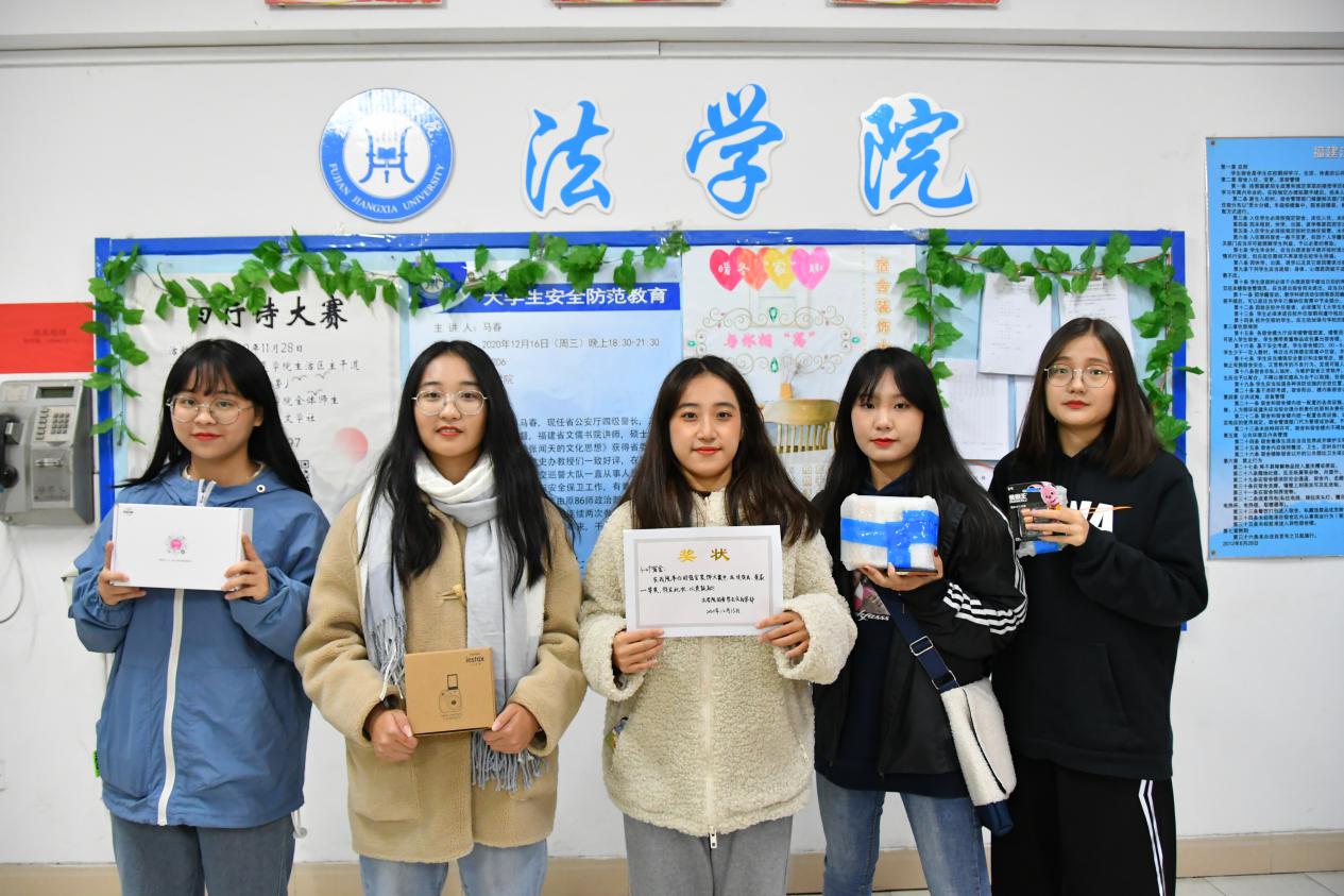 12月14日,法学院于生活区举办“暖冬‘家’趣,与你相‘寓’”宿舍装饰大赛。团委负责人、19级思想政治辅导员王喜军老师、18级思想政治辅导员黄礼锵老师、20级思想政治辅导员赵巧燕老师、学生会主席阮世榕、团委副书记廖淑宁、陈泉、学生会副主席潘天煌、郭乾昆担任此次大赛评委,法学院学生积极参加本次活动。