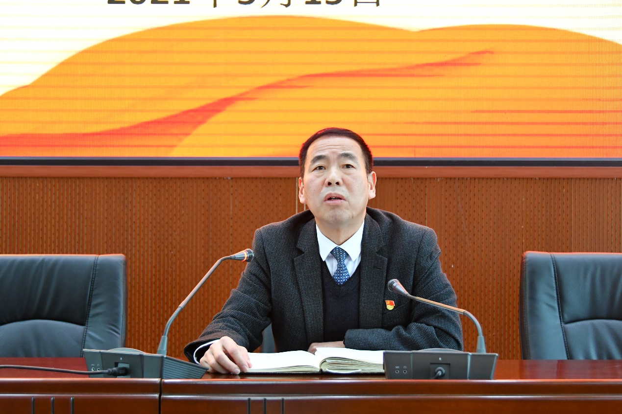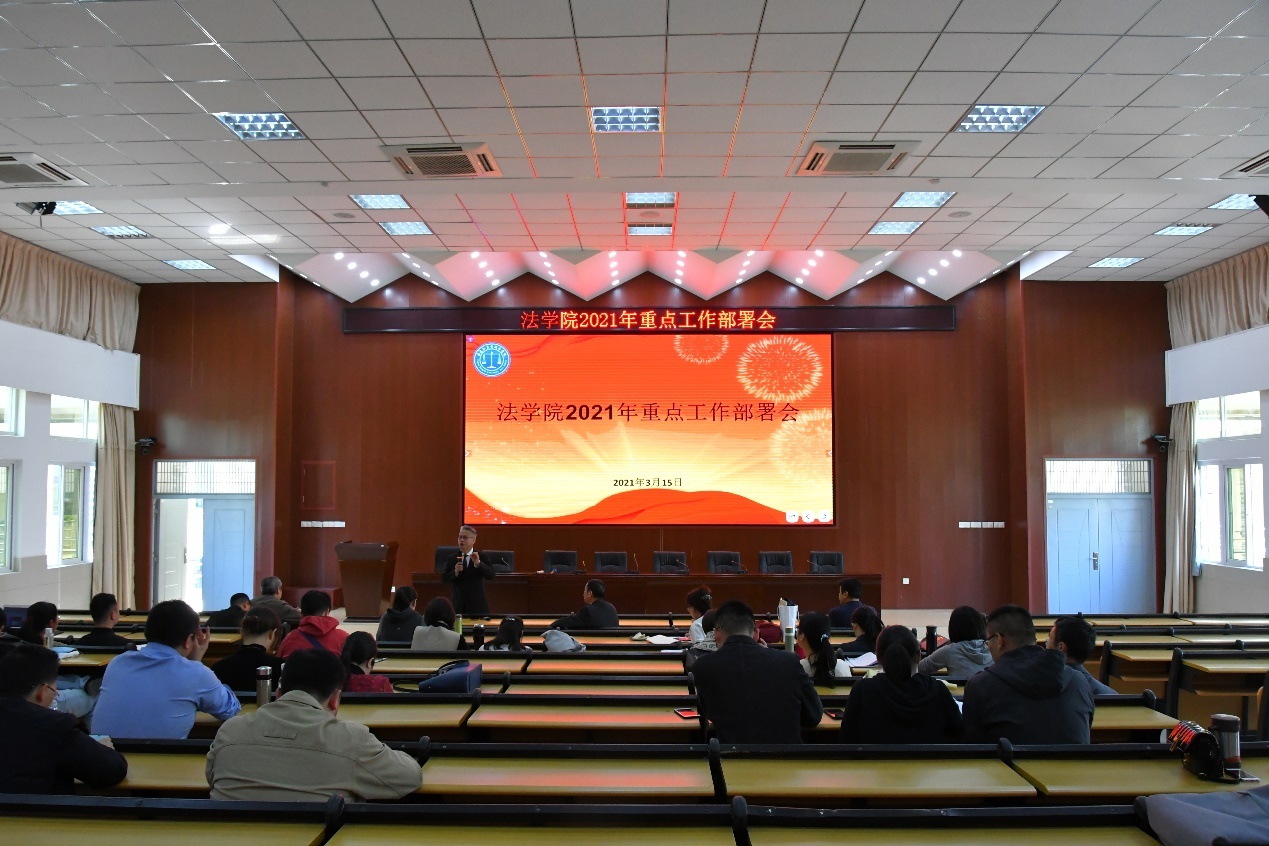 3月15日下午,法学院在教学楼7B206召开学院2021年重点工作部署会,学院班子成员、全体教职工参加,会议由党委书记张湖北主持。