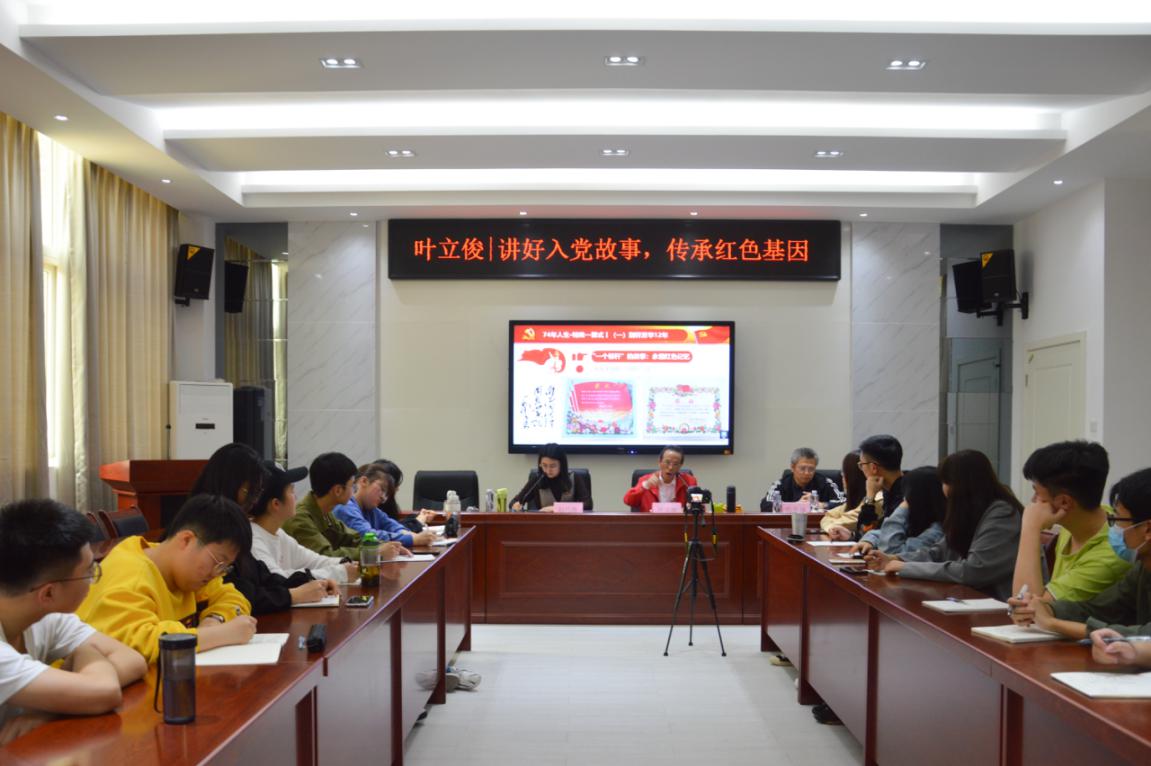 3月19日下午,法学院于办公楼7B202开展“讲好入党故事,传承红色基因”讲座。本次讲座由退休党员叶立俊同志担任主讲,法学院2020级思想政治辅导员赵巧燕老师主持讲座,法学院党委副书记陈恭健、法学院学生第二党支部成员、入党积极分子参加讲座。
