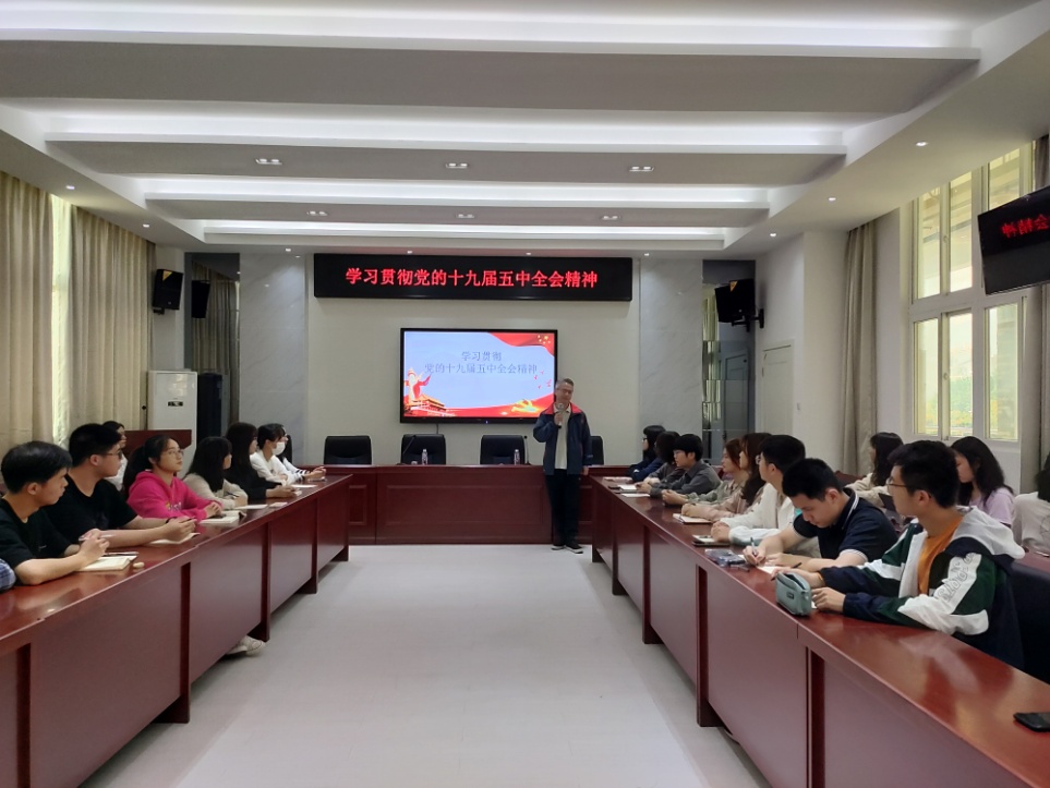 3月29日,法学院院长陈明添在教学楼7B202向2020级卓越法治人才实验班30名学生宣讲党的十九届五中全会精神。
