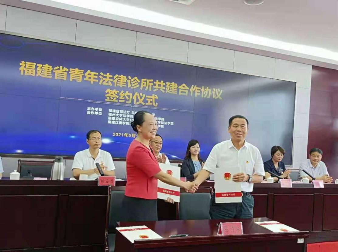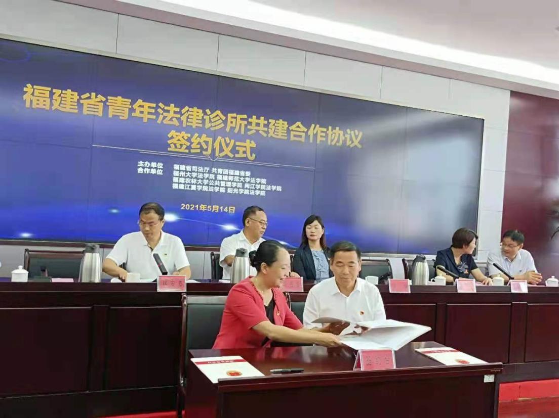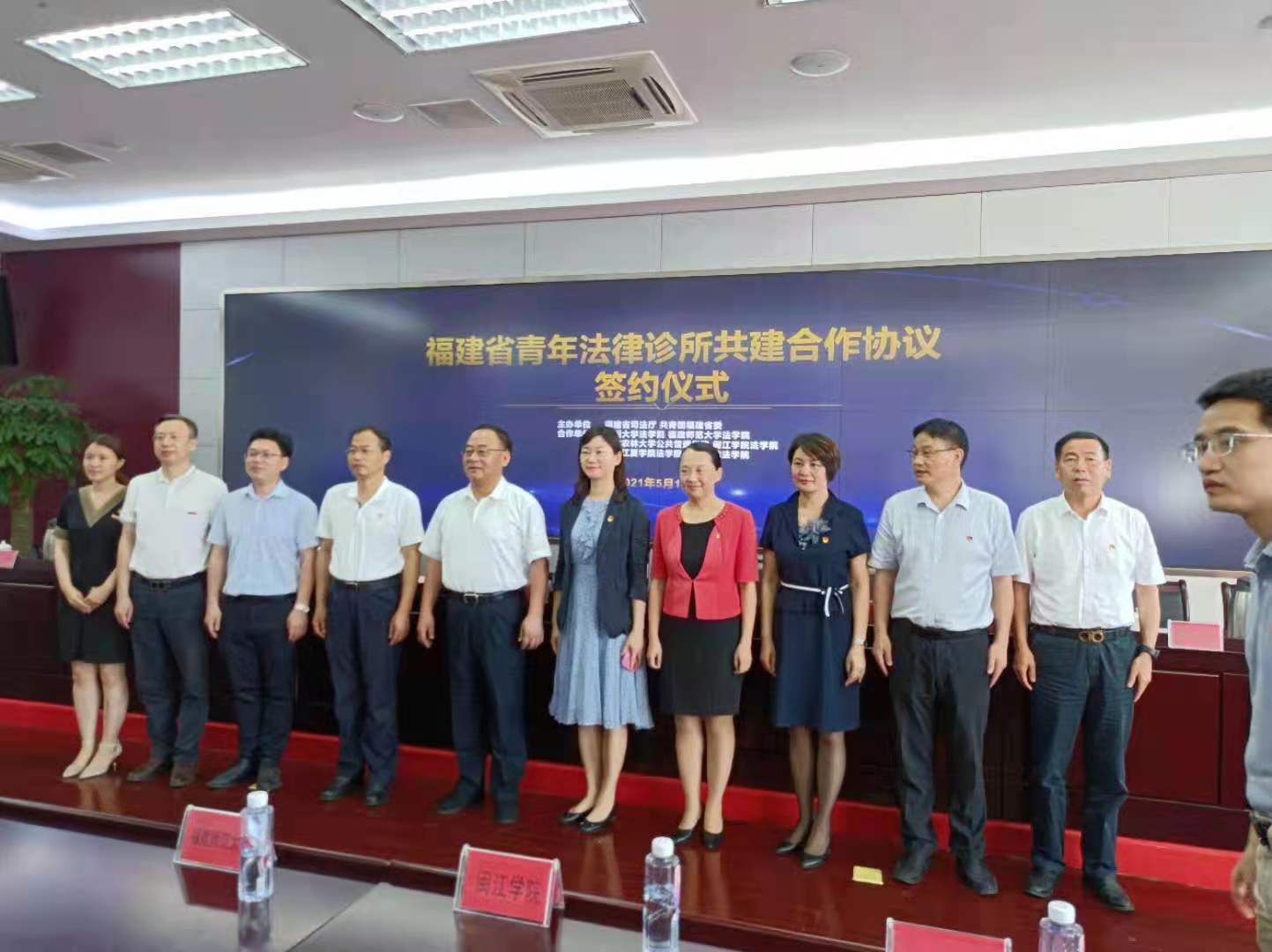 5月14日,福建省司法厅与团省委、在榕高校举办青年法律诊所共建合作协议签约仪式。法学院党委书记张湖北研究员,团委副书记王喜军应邀参加签约活动。