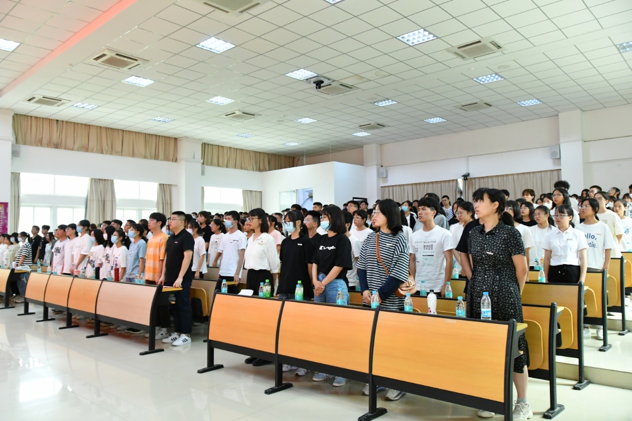 新生开学典礼在庄严的国歌声中拉开序幕。法学院党委副书记陈恭健副教授代表法学院向2021级新生的到来表示热烈欢迎和衷心祝贺,并简要介绍了法学院发展情况。
