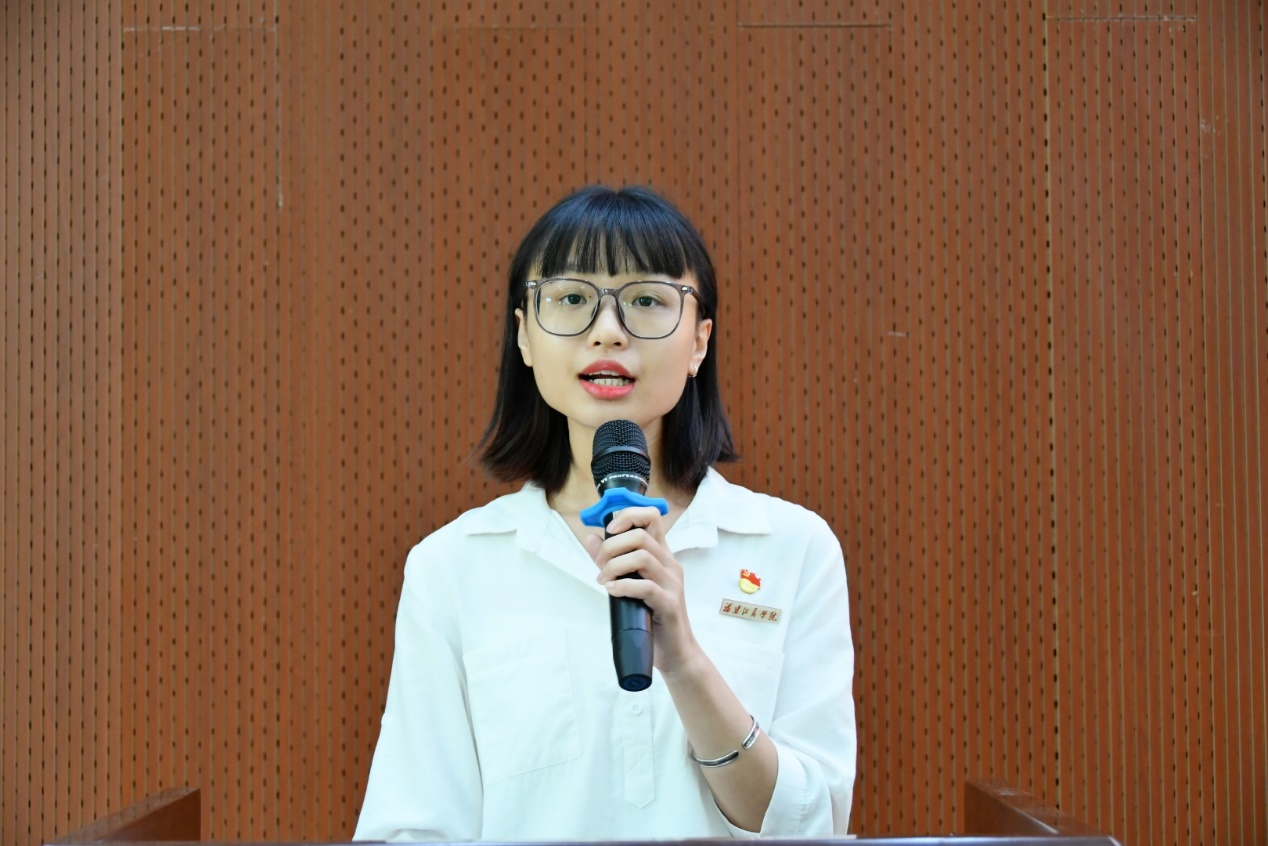 2021年校“最美学生”获得者、优秀学生代表李佩琪同学发言。她从自身的实际经历出发,认为在大学的学习和生活中,要热爱探索世界,积极参与社会实践活动,同时要热爱求索知识,充分利用学院优质硬件设施,丰富知识结构,不断提升自己,成为一名优秀的大学生。