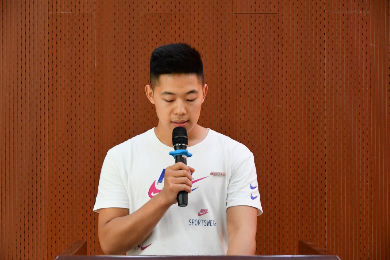 2021级新生代表王旭同学发言。他以“放飞梦想,追逐星空”为主题,号召同学们要珍惜大学时光,脚踏实地,不懈努力奋斗,只有进行了激情奋斗的青春,只有进行了顽强拼搏的青春,才会留下充实、温暖、持久、无悔的青春回忆,成长为有理想、有担当的时代青年。