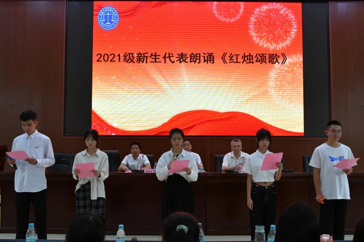 2021级新生代表朗诵《红烛颂歌》,向在教书育人岗位默默付出、无私奉献的老师们致以诚挚的节日祝福。