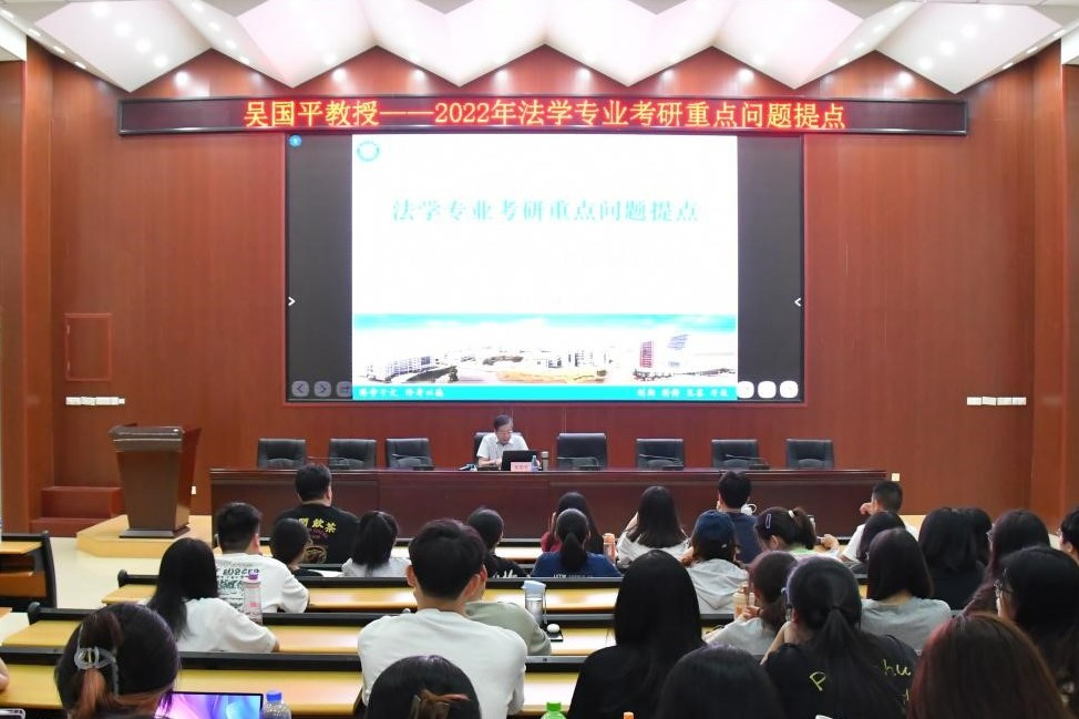 9月26日下午,福建江夏学院家事法研究院院长吴国平教授于法学院7B206报告厅作题为《法学专业考研重点问题提点》的考研辅导讲座。本次讲座由2021级思想政治辅导员陈士一老师主持,法学院 2019级和2020级部分学生到场聆听。