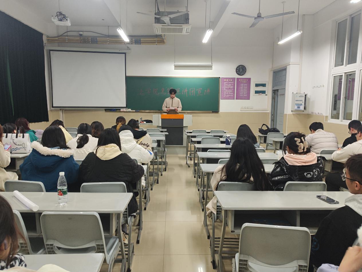 先锋宣讲团成员陈嘉豪于22级刑事法班宣讲