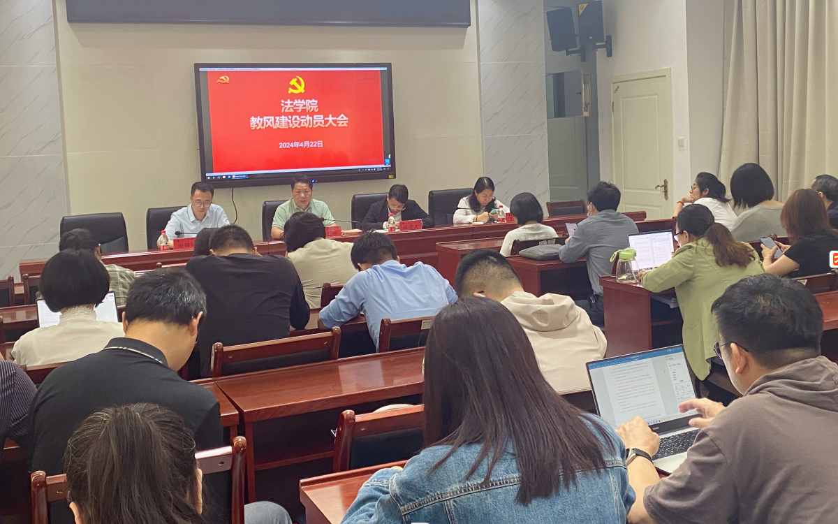 林贵文院长对《福建江夏学院教风建设实施方案》的内涵进行了详细解读,并就我院教风建设工作进行了安排部署。他对全体教职员工提出了三点要求:一是统一思想,提高认识。要求全体教师学习学校教学管理规章制度,深刻领会其精神;二是加强教学过程管理,规范教学秩序。他立足学院实际情况,围绕课堂教学质量的监督与管理、教风学风提升及课堂教学秩序实施、试卷及支撑材料、毕业论文及支撑材料、实习实践基地建设五个方面提出充分利用在线听课巡课平台、进一步修订《教师调停课管理办法》、《法学院本科毕业论文规范化要求》等相关规章制度,不断完善学院教学秩序实施细则。三是坚持问题导向、注重标本兼治。学院将教风学风建设作为一项常抓不懈的系统工程,加强教学工作和学风建设的联动,加强任课老师与辅导员联动管理机制,形成教风学风建设全院齐抓共管的良好局面。