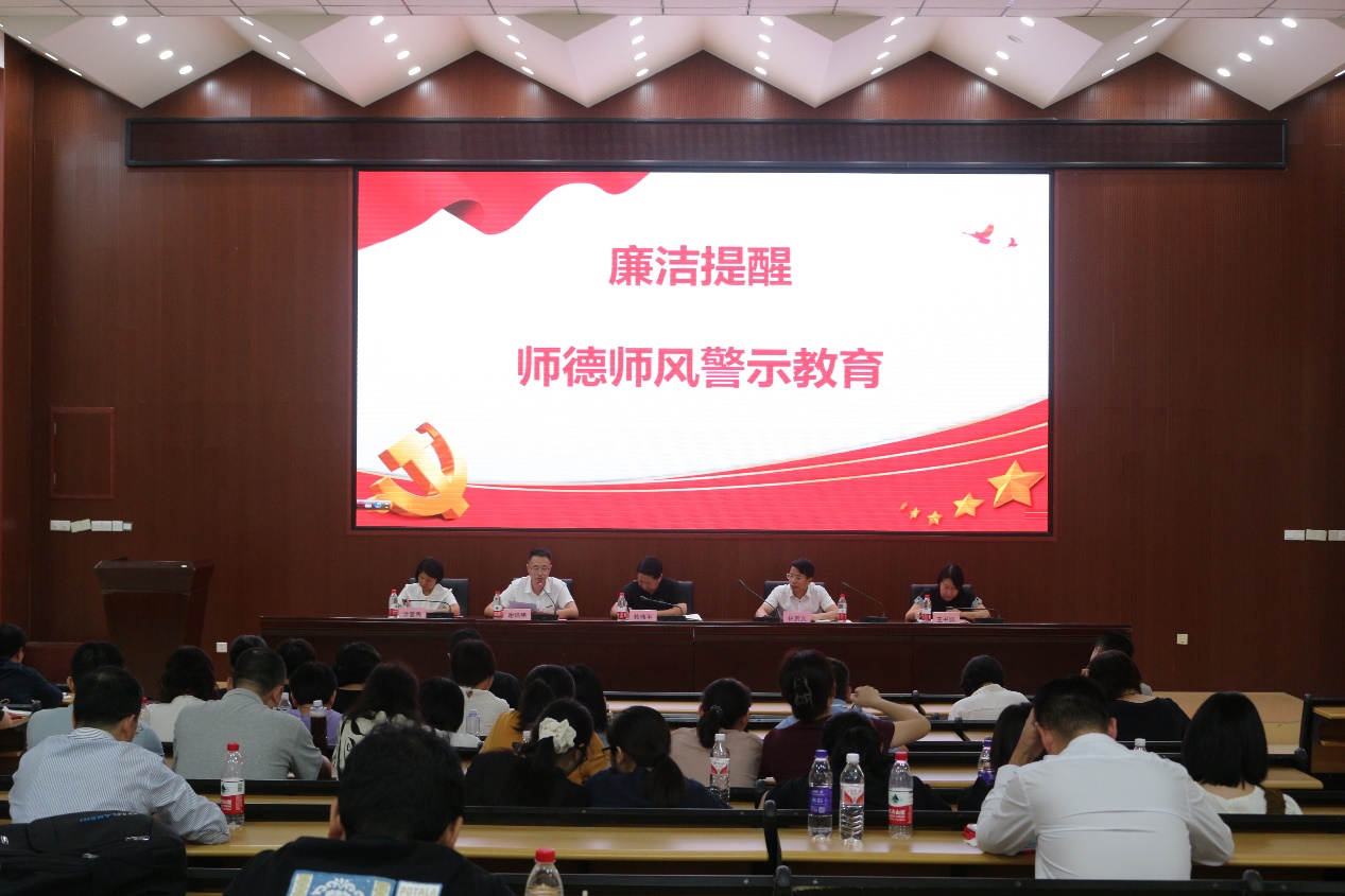 谢锦炜要求全体教职工树立高度的责任感、使命感,将廉洁自律和师德师风融入日常教学,弘扬教育家精神,关心学生成长,助推法学院高质量发展。