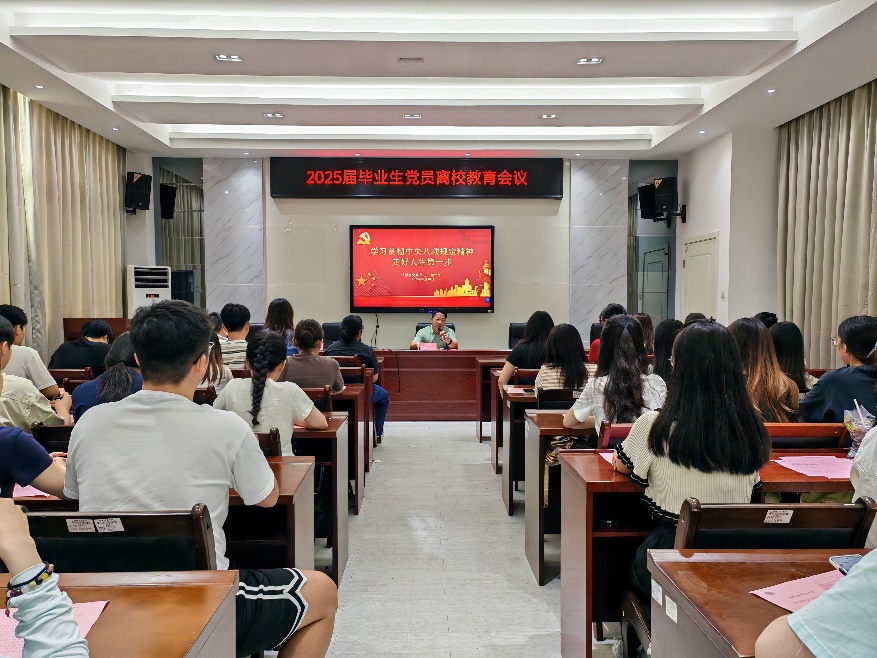 学院党委书记赖伟平为毕业生党员讲授《学习贯彻中央八项规定精神 走好人生第一步》主题党课。他强调要深入学习习近平总书记关于加强党的作风建设的重要论述,深刻认识践行党的优良作风的重要意义。他希望大家能严守纪律底线,将个人理想融入国家发展大局,走好人生每一步。最后,他向毕业生党员送上毕业祝福,勉励大家在新的岗位上永葆党员本色,为法治强国建设和民族复兴贡献力量,书写无愧于时代的青春答卷。