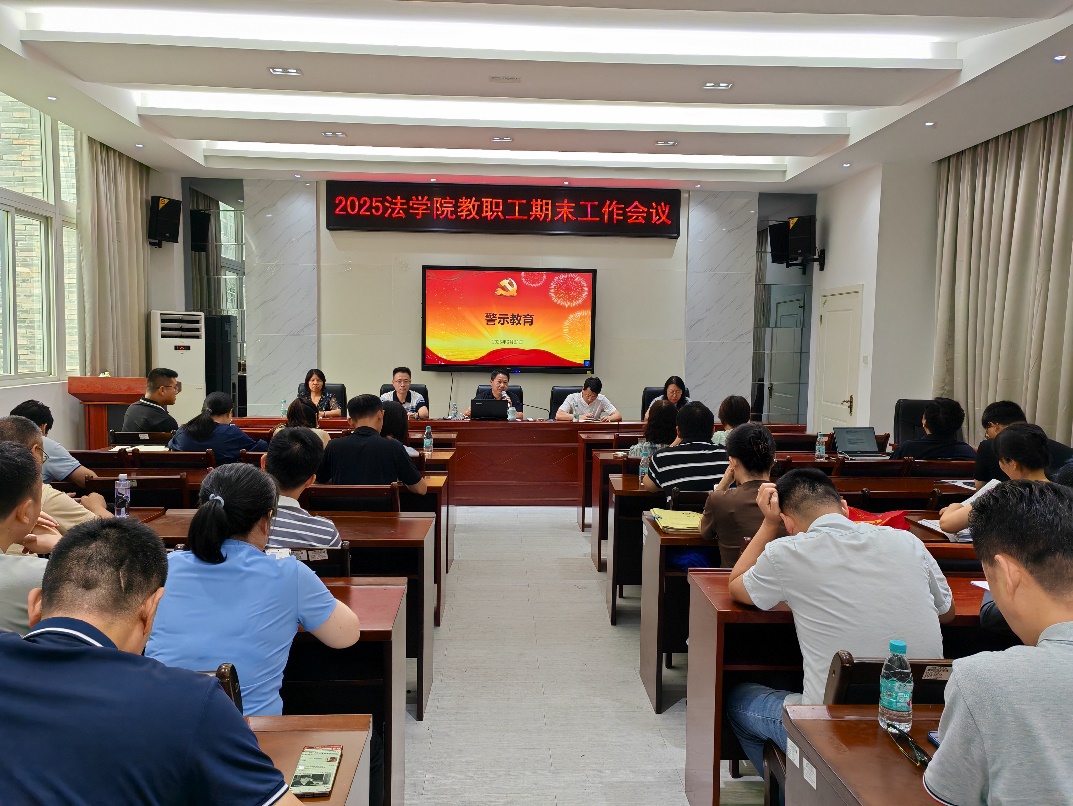 为深入贯彻中央八项规定精神学习教育,6月23日,法学院在教学楼7b202召开警示教育大会,进行再部署、再动员、再落实。法学院党委班子成员,全体教职工参加会议,会议由学院党委书记赖伟平主持。