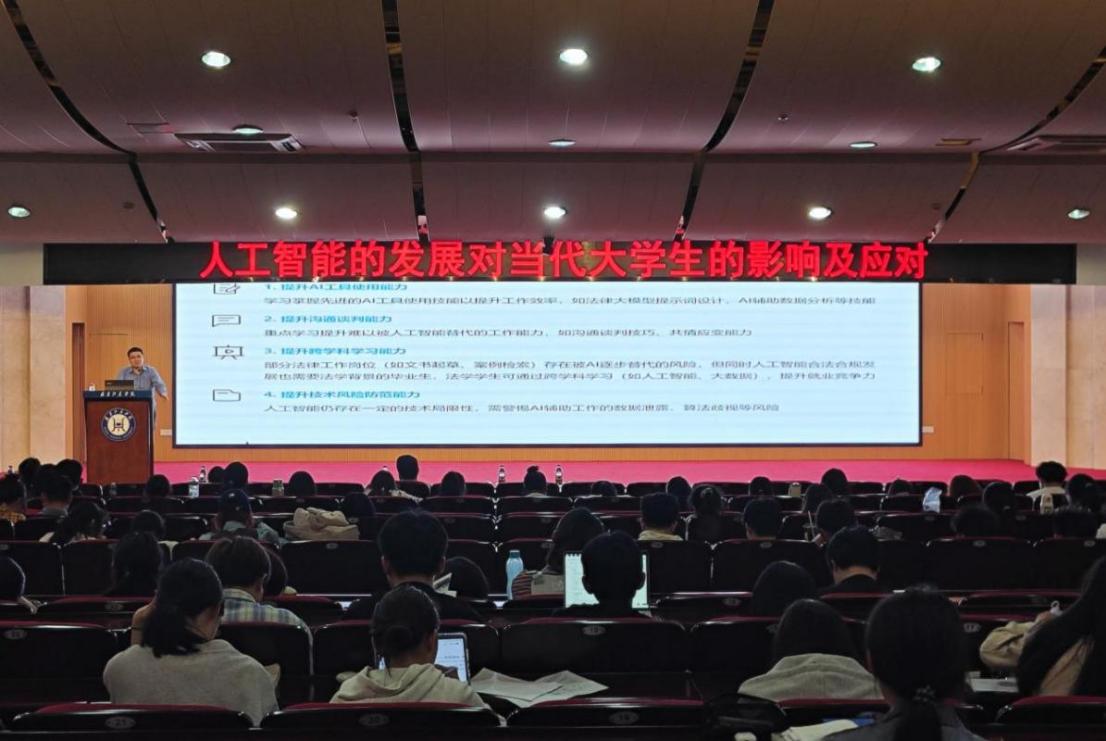 2025年3月25日晚上,法学院邀请福建省大数据集团有限公司战略合作部副部长、福建大数据一级开发有限公司支部书记兼副总经理赖致远博士在图书馆学术报告厅开展了“人工智能的发展对当代大学生的影响及应对”专题讲座。教育法律实务研究中心组织研究人员及部分学生骨干参与其中,从法律实务的角度深入思考人工智能技术对法学教育的影响。讲座围绕“理论建构-实践应用-教育启示”三位一体的框架展开。赖致远博士系统梳理了人工智能技术跃迁历程,聚焦法律科技实践应用,引用大量实例及详实数据,系统剖析了人工智能对高等教育特别是法学教育的深远影响,引导师生主动融入人工智能大模型发展的浪潮中去,挖掘人工智能时代教育的永恒价值点。讲座中,教育法律实务研究中心的研究人员积极参与讨论,从法律伦理和实务操作的角度提出了多个关键问题,拓展了师生的技术视野。