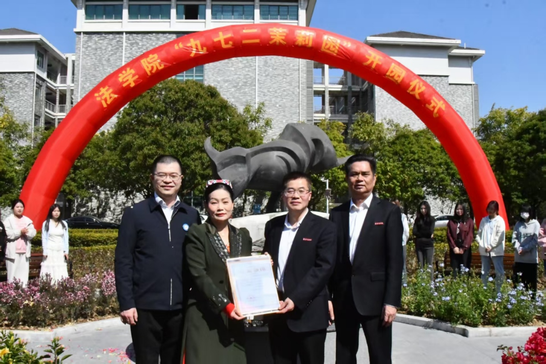 3月22日下午,法学院“972茉莉园”正式开园。校党委书记凌启淡、副书记王长勇出席开园仪式,校友代表,校党政办和法学院负责人以及部分师生代表等参加仪式。
