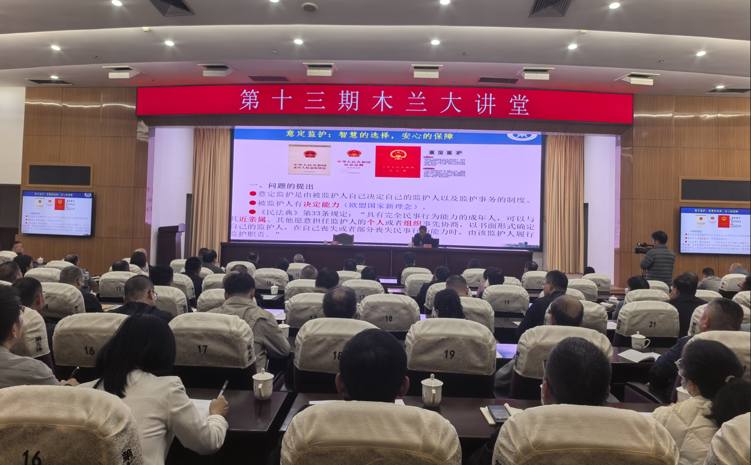 吴国平教授以“意定监护:智慧的选择,安心的保障”为主题,从我国意定监护制度的时代背景与法理基础出发,结合5个典型案例,深入解读制度的适用对象与主要内容,重点剖析意定监护人的职责与制度的运用,具体解析司法保护立场。讲座内容翔实、逻辑清晰、分析透彻,既有理论高度,又有实践深度,为莆田市领导干部准确把握意定监护制度,提升依法处理相关事务的法治化、规范化水平提供有力的理论指导和实践启示。莆田市直机关处级干部代表和政法委全体干部共百余人现场听讲,并通过视频会议形式连线有关基层单位。