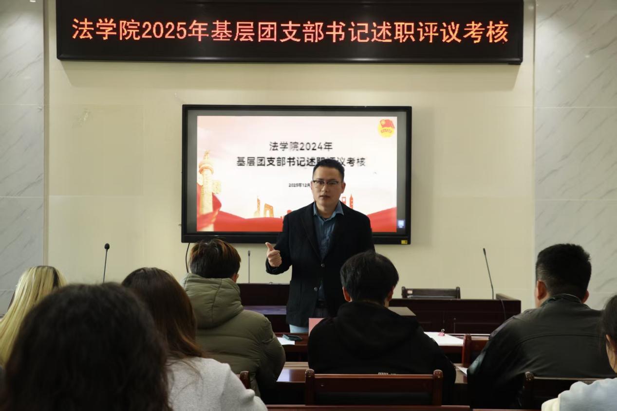 为深入学习贯彻习近平新时代中国特色社会主义思想和党的二十届四中全会精神,进一步加强和巩固团的基层组织建设,2025年12月29日,法学院团委组织开展2025年度基层团支部书记述职评议会议,本次会议由学院团委负责人黄礼锵主持。
