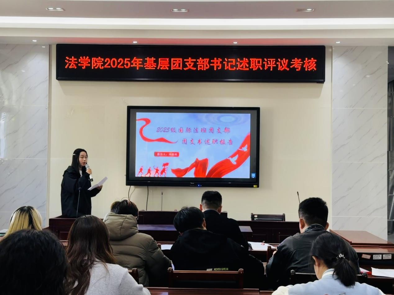 经过评议,2024级刑事法班团支部、2024级行政法班团支部、2025级国际法班团支部、2025级刑事法班团支部等4个团支部积极响应学校及学院团委政策号召,团支部工作取得了优异的活动成绩,评议等次为“好”。会上还部署了2026年寒假返乡社会实践及年度优秀团员评议等事项。