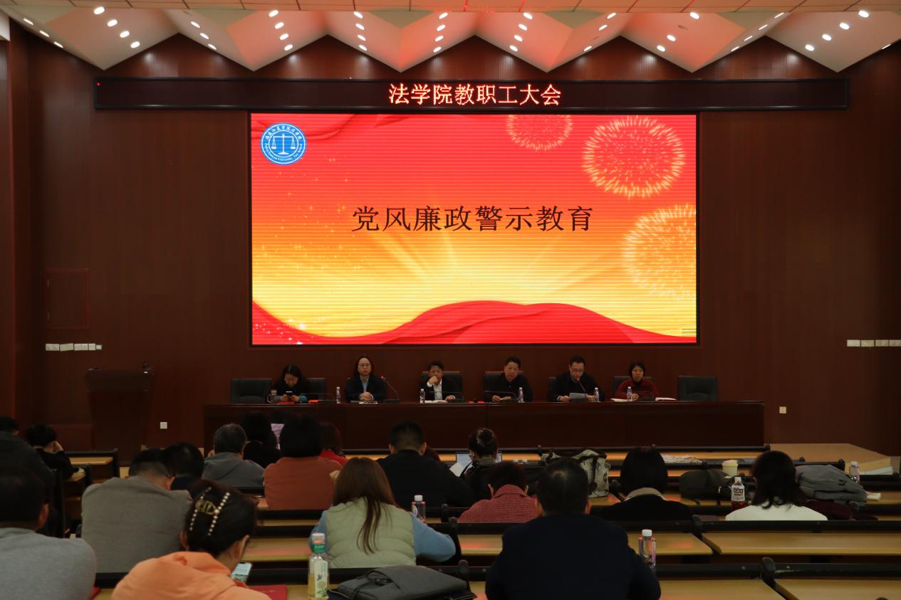 为深入推进党风廉政建设,营造风清气正的育人环境,3月16日,法学院在教学楼7b206召开警示教育大会,进行再部署、再动员、再落实。法学院党委班子成员,全体教职工参加会议,会议由学院党委书记赖伟平主持。